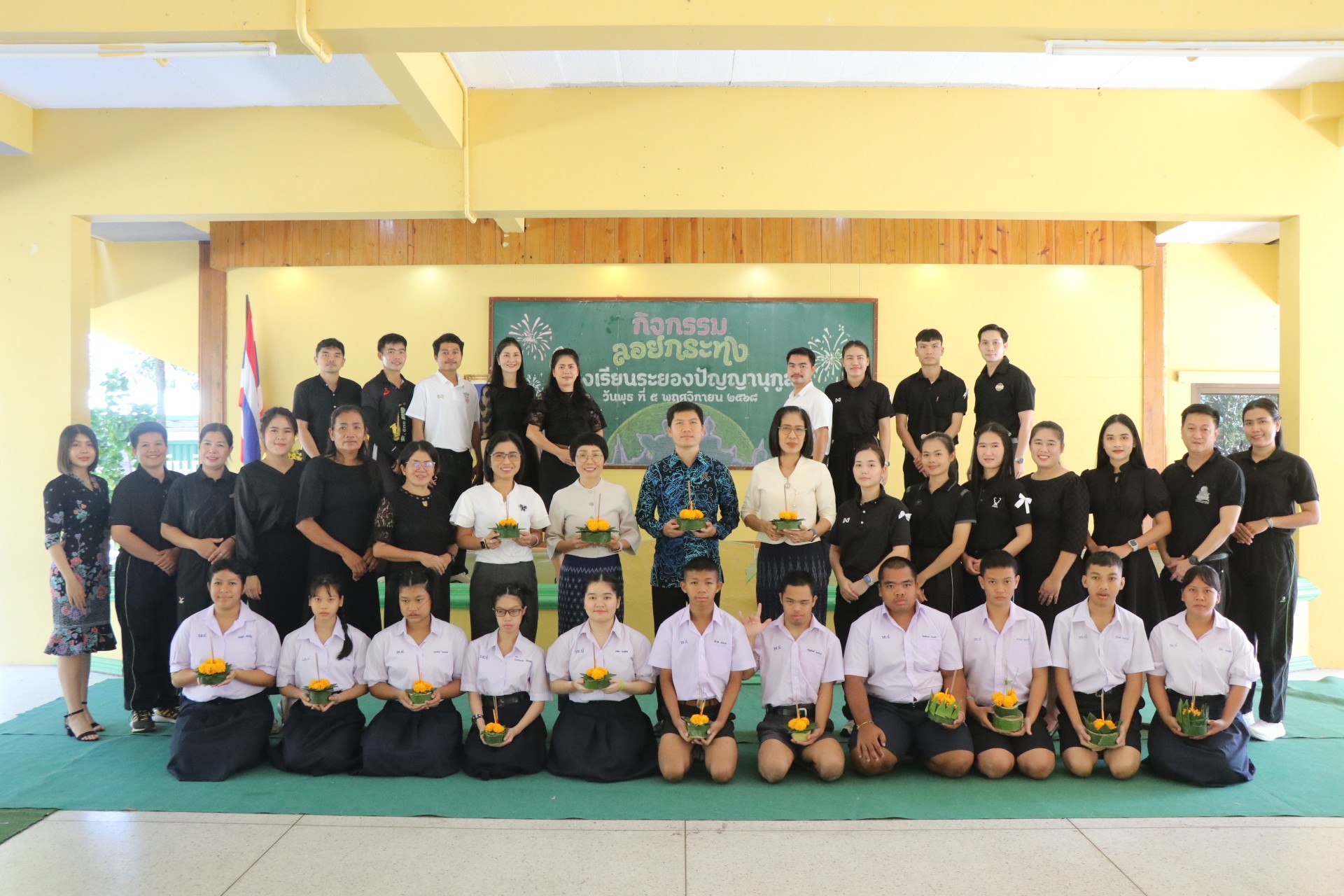 วันพุธ ที่ 5 เดือน พฤศจิกายน พ.ศ. 2568 โรงเรียนระยองปัญญานุกูล จังหวัดระยอง นำโดย นายโต้ง พรมกุล ผู้อำนวยการโรงเรียน พร้อมด้วยคณะผู้บริหาร คณะครู บุคลากร และนักเรียน เข้าร่วมกิจกรรมลอยกระทง ประจำปีการศึกษา 2568 เพื่อให้นักเรียน ครู และบุคลากร ได้ร่วมสืบสานประเพณีลอยกระทง ซึ่งเป็นประเพณีอันดีงามของคนไทยที่สืบทอดมาตั้งแต่อดีตกาล พร้อมทั้งให้นักเรียนได้ฝึกประดิษฐ์กระทงได้อย่างสวยงาม เหมาะสม