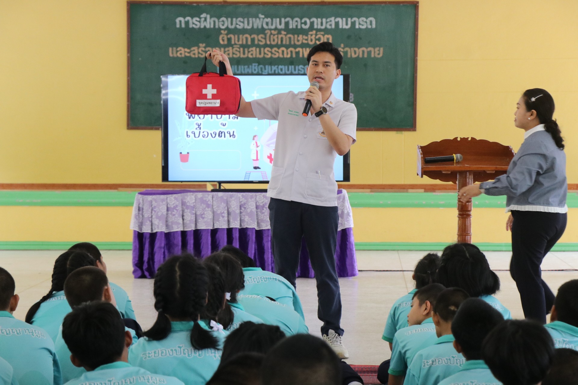 โครงการฝึกอบรมพัฒนาความสามารถด้านการใช้ทักษะชีวิตและสร้างเสริมสมรรถภาพทางร่างกาย "แผนเผชิญเหตุบนรถทัวร์" ประจำปีการศึกษา 2568 เพื่อให้นักเรียน ครูและบุคลากร พัฒนาความสามารถด้านการใช้ทักษะชีวิตในการแก้ปัญหาเฉพาะหน้า และการตัดสินใจอย่างเหมาะสมในสถานการณ์เสี่ยง เสริมสร้างความรู้และความเข้าใจ เกี่ยวกับแผนเผชิญเหตุบนรถทัวร์ รวมถึงการปฏิบัติตนเมื่อเกิดเหตุฉุกเฉิน ฝึกทักษะการเอาตัวรอด ปลูกฝังเจตคติด้านความปลอดภัยและความรับผิดชอบต่อตนเองและผู้อื่นในระหว่างการเดินทาง โดยได้รับเกียรติจาก บริษัท IRPC เป็นวิทยากรในการจัดกิจกรรม